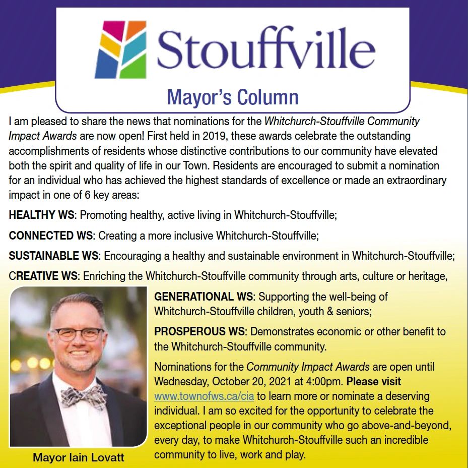 OCT 2021 STOUFFVILLE SUN-TRIBUNE’S MAYOR’S MONTHLY