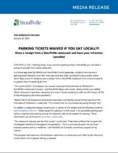 Whereas the recent Covid19 lockdown announcement of January 6 has caused continued financial strain on Whitchurch-Stouffville’s restaurant industry,